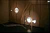 Meridian-elementer montert i et lite, mørklagt rom. Bearbeidete fotos etset inn i polert, rustfrie stålplaketter, lys og en lav mannsnynning. Fra enkelte vinkler kan bildene "leses", fra andre framstår de som negativer og i enkelte tilfeller forsvinner de helt. |