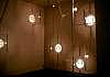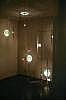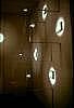 Meridian elements installed in a small, dark room. Edited photos etched into polished, stainless steel plates, lights and a low volum, male humming. At certain angles the photos is "readable", at other they appear negative and at some the photographic image disappear. The wiring for the light was open, filling the space between the plates. |