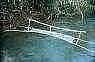 5 different bridges in the river of Maschiolo, Tuscania, Italy. The river is approx. 5m wide and the bridges operates in a length of 50m. The depth of the river is 0,5 to 1m. The bridges are built in canne (a material growing along the river), painted white and partially covered with mosquitoscreen. Tuscania, Italy. |
