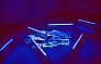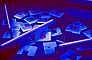 Troendelag Art Center, Trondheim. Books, UV-lights and stars. UV-light removes everythings that do not fluorise. The contents of the books are about subjects that are valid both in everyday life and in philosophy. In the "sky" there were small paper tags with letters. |